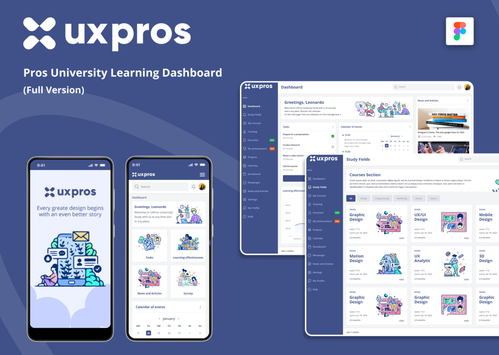 An e-learning platform UI kit with a design system, desktop and mobile screens! (Figma File)